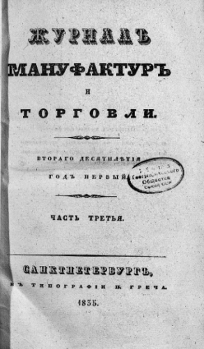 Журнал мануфактур и торговли. 1835, № 7. - Санкт-Петербург, 1835