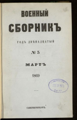 Военный сборник. 1869, № 3. - Санкт-Петербург, 1869