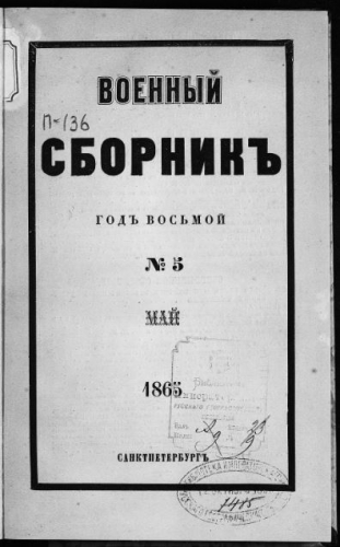 Военный сборник. 1865, № 5. - Санкт-Петербург, 1865