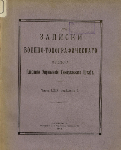 Записки Военно-топографического отдела Главного управления Генерального штаба. Ч. 69. Отд-ние 1. - СПб., 1914.