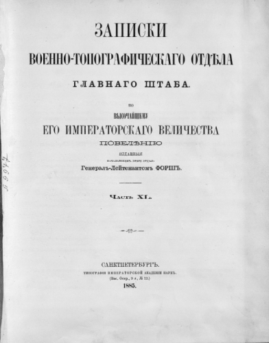 Записки Военно-топографического отдела Гл. штаба. Ч. XL / изд. ген.-лейт. Форш. - Санкт-Петербург, 1885