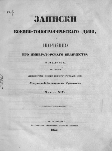 Записки Военно-топографического депо. Ч. XIV / изд. ген.-лейт. Тучковым. - Санкт-Петербург, 1852