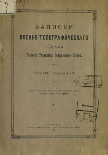 Записки Военно-топографического отдела Гл. упр. Ген. штаба. Ч. LXXI, Отд. I-II / изд. ген.-майор. Аузан. - Петроград, 1917