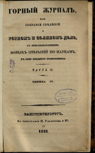 Горный журнал. 1842, Ч. 2. - Санкт-Петербург, 1842