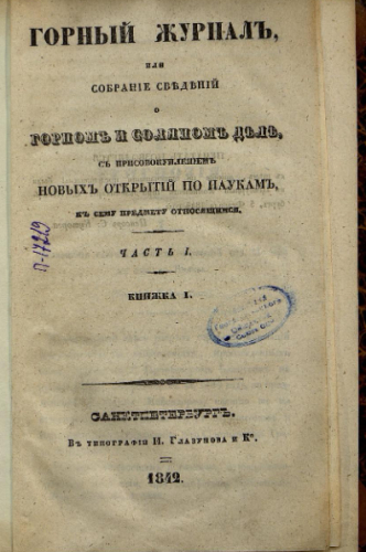 Горный журнал. 1842, Ч. 1. - Санкт-Петербург, 1842