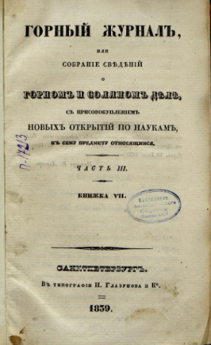 Горный журнал. 1839, Ч. 3. - Санкт-Петербург, 1839