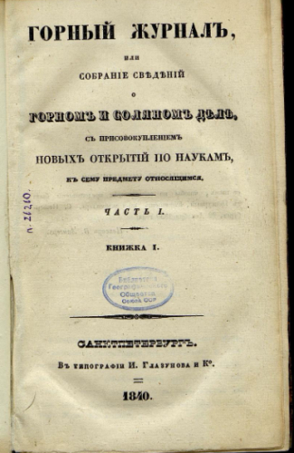 Горный журнал. 1840, Ч. 1. - Санкт-Петербург, 1840