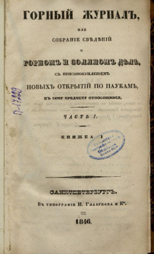 Горный журнал. 1846, Ч. 1. - Санкт-Петербург, 1846
