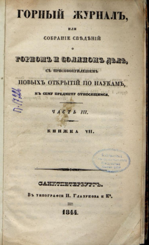 Горный журнал. 1844, Ч. 3. - Санкт-Петербург, 1844