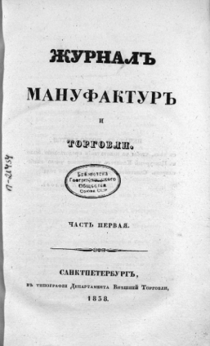 Журнал мануфактур и торговли. 1838, № 1. - Санкт-Петербург, 1838