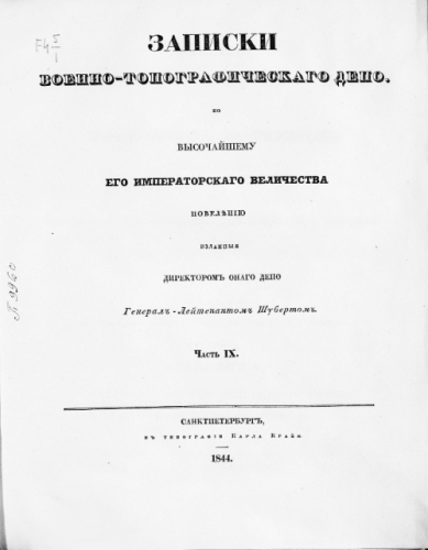 Записки Военно-топографического отдела Главного управления Генерального штаба. Ч. 9. - СПб., 1844.