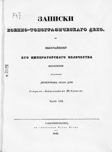 Записки Военно-топографического отдела Главного управления Генерального штаба. Ч. 8. - СПб., 1843.