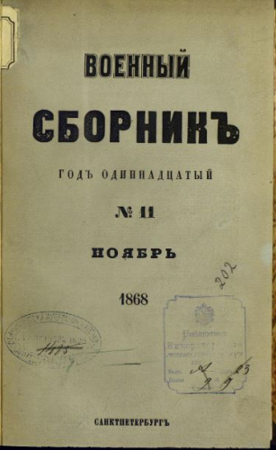 Военный сборник. 1868, № 11. - Санкт-Петербург, 1868
