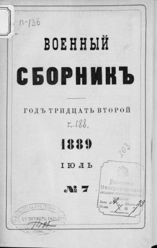 Военный сборник. 1889, № 7. - Санкт-Петербург, 1889
