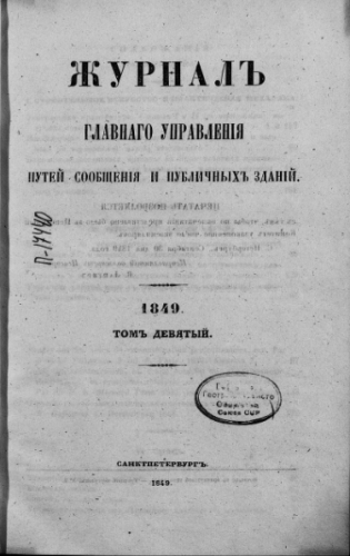 Журнал Гл. упр. путей сообщения и публичных зданий. 1849, Кн. 1-3. - Санкт-Петербург, 1849