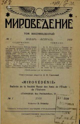 Мироведение. Т. 18, № 1 / Главнаука ; Русское общество любителей мироведения. - Л. : Госиздат, 1929
