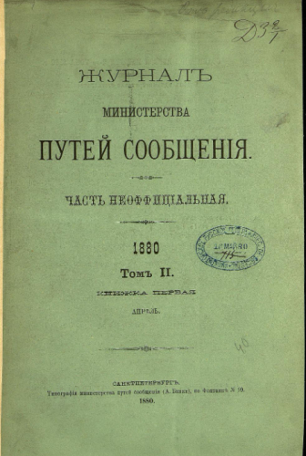 Журнал Министерства путей сообщения. Часть неофициальная. 1880, Т. 2, Кн. 1. - Санкт-Петербург, 1880