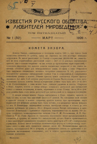 Известия Русского общества любителей мироведения. Т. 15, № 1 (52). - Л., 1926