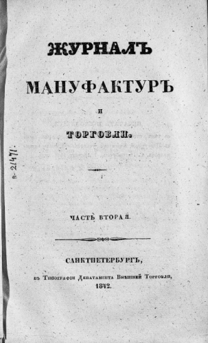 Журнал мануфактур и торговли. 1842, № 4. - Санкт-Петербург, 1842