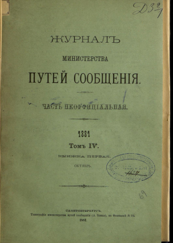 Журнал Министерства путей сообщения. Часть неофициальная. 1881, Т. 4, Кн. 1. - Санкт-Петербург, 1881