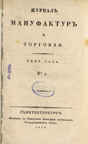 Журнал мануфактур и торговли. 1829, № 1. - Санкт-Петербург, 1829