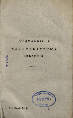 Журнал мануфактур и торговли. 1825, № 8. - Санкт-Петербург, 1825