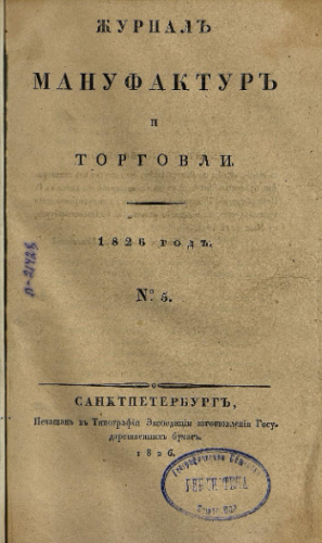 Журнал мануфактур и торговли. 1826, № 5. - Санкт-Петербург, 1826