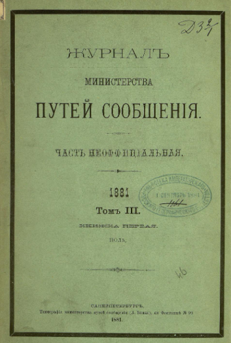 Журнал Министерства путей сообщения. Часть неофициальная. 1881, Т. 3, Кн. 1. - Санкт-Петербург, 1881
