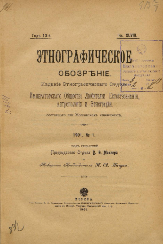 Этнографическое обозрение. 1901, № 1. - М. : Этнографический отдел Императорского Общества любителей естествознания, антропологии и этнографии, состоящего при Московском университете, 1901