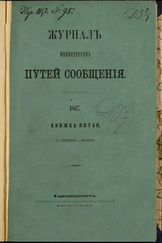 Журнал Министерства путей сообщения. 1867, Кн. 5. - Санкт-Петербург, 1867