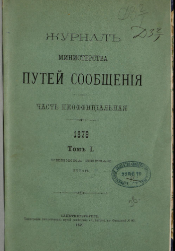 Журнал Министерства путей сообщения. Часть неофициальная. 1879, Т. 1, Кн. 1. - Санкт-Петербург, 1879