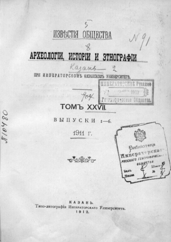 Известия Общества археологии, истории и этнографии при Имп. Казанском ун-те. Т. 27. - Казань, 1912