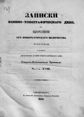 Записки Военно-топографического депо. Ч. XVIII / изд. ген.-лейт. Тучковым. - Санкт-Петербург, 1856