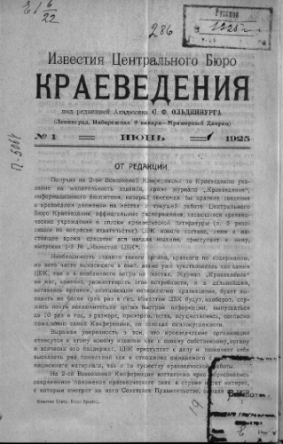 Известия Центрального бюро краеведения. 1925, № 1. - Ленинград, 1925