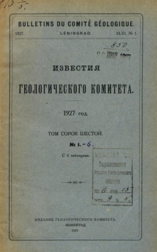 Известия Геологического комитета. Т. 46, № 1. - Ленинград, 1927