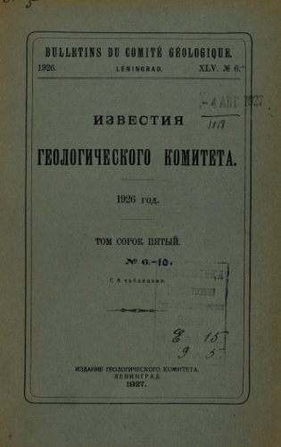 Известия Геологического комитета. Т. 45, № 6. - Ленинград, 1927