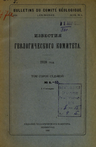 Известия Геологического комитета. Т. 47, № 6. - Ленинград, 1928