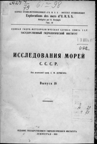 Исследования морей СССР. Вып. 18. - Ленинград : Гос. Гидрологический ин-т, 1933