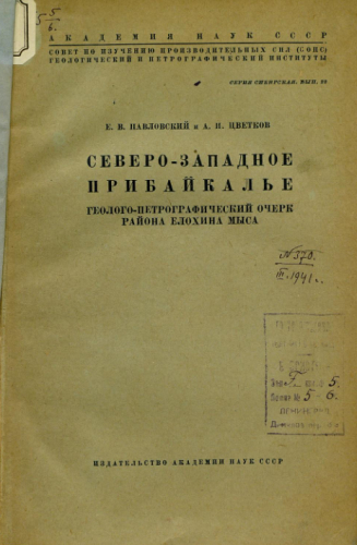 Труды Совета по изучению производительных сил. Серия Сибирская. Вып. 22 : Северо-Западное Прибайкалье : Геолого-петрографический очерк района Елохина мыса / Е.В. Павловский и А.И. Цветков. - М. ; Л. : Акад. наук СССР, 1936