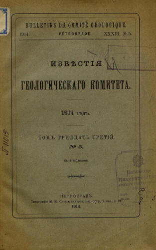 Известия Геологического комитета. Т. 33, № 5. - Петроград, 1914