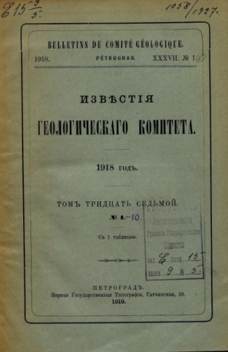 Известия Геологического комитета. Т. 37, № 1. - Петроград, 1919