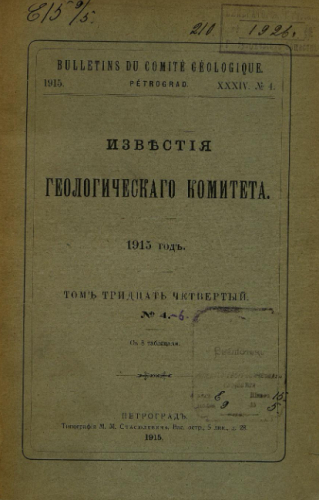 Известия Геологического комитета. Т. 34, № 4. - Петроград, 1915