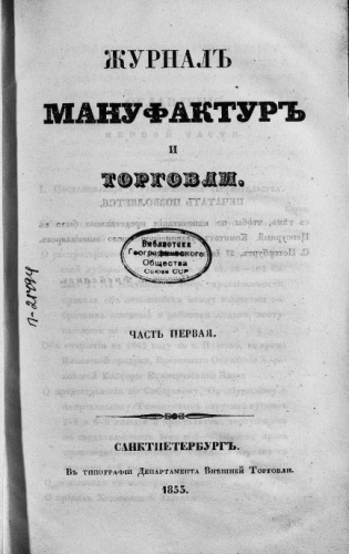 Журнал мануфактур и торговли. 1853, № 1-3. - Санкт-Петербург, 1853