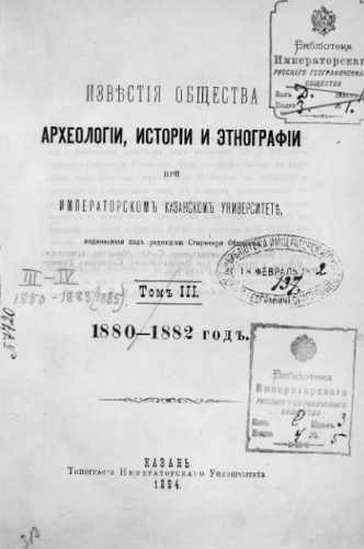 Известия Общества археологии, истории и этнографии при Имп. Казанском ун-те. Т. 3. - Казань, 1884