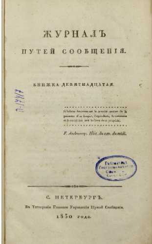 Журнал путей сообщения. Кн. 19. - Санкт-Петербург, 1830