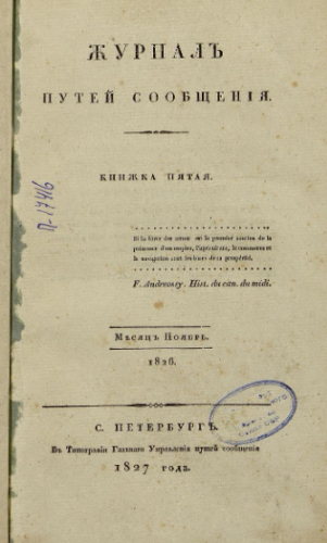Журнал путей сообщения. Кн. 5. - Санкт-Петербург, 1827