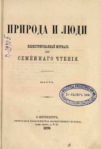 Природа и люди. Март, 1878. - Санкт-Петербург, 1878