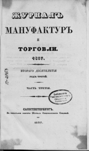 Журнал мануфактур и торговли. 1837, № 7-8. - Санкт-Петербург, 1837