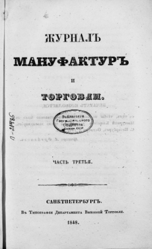 Журнал мануфактур и торговли. 1848, № 7. - Санкт-Петербург, 1848