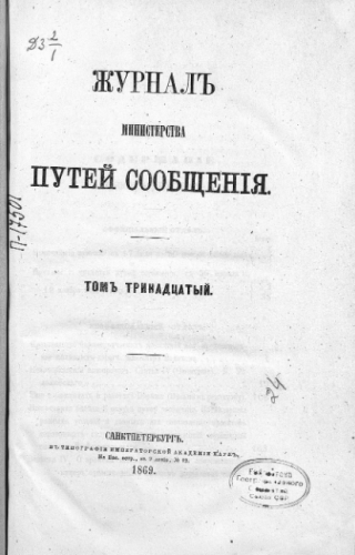 Журнал Министерства путей сообщения. 1869, Кн. 5. - Санкт-Петербург, 1869